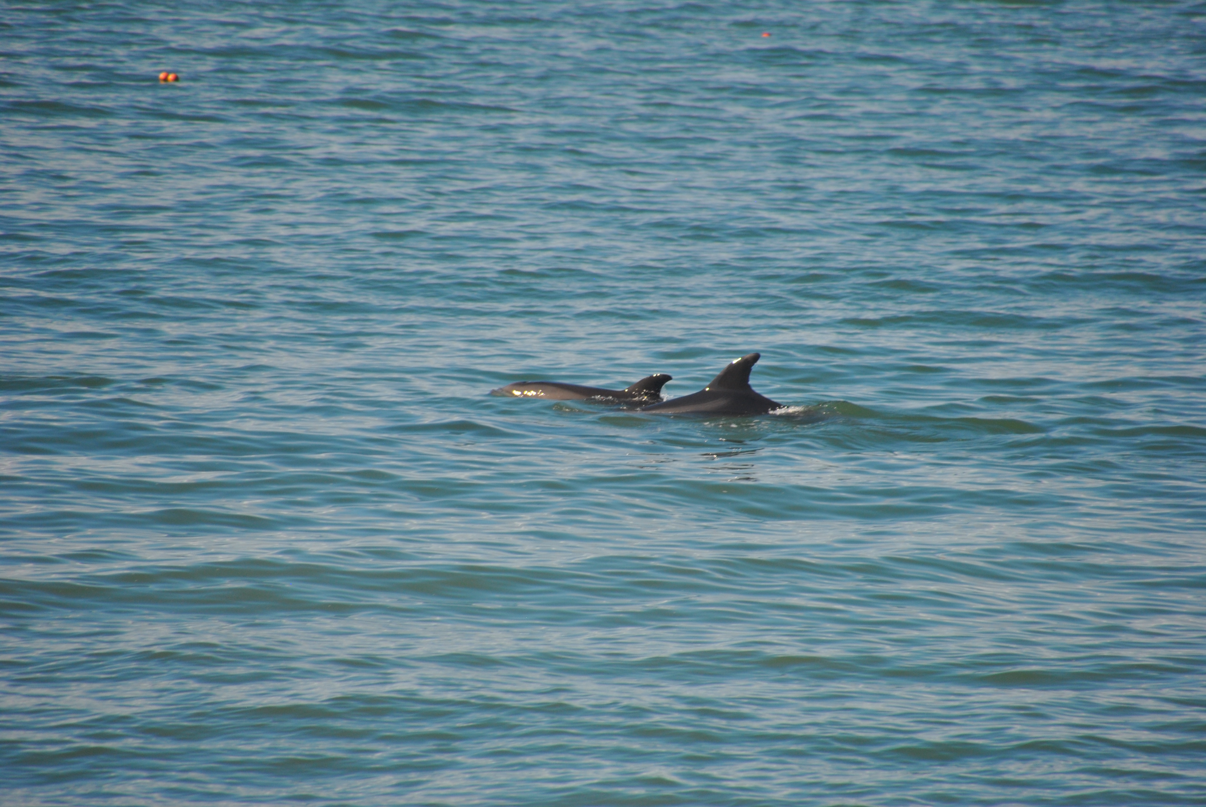 Terwijl we heerlijk zaten te eten, doken er plots enkele dolfijnen op, vlak voor onze neus. Prachtig!