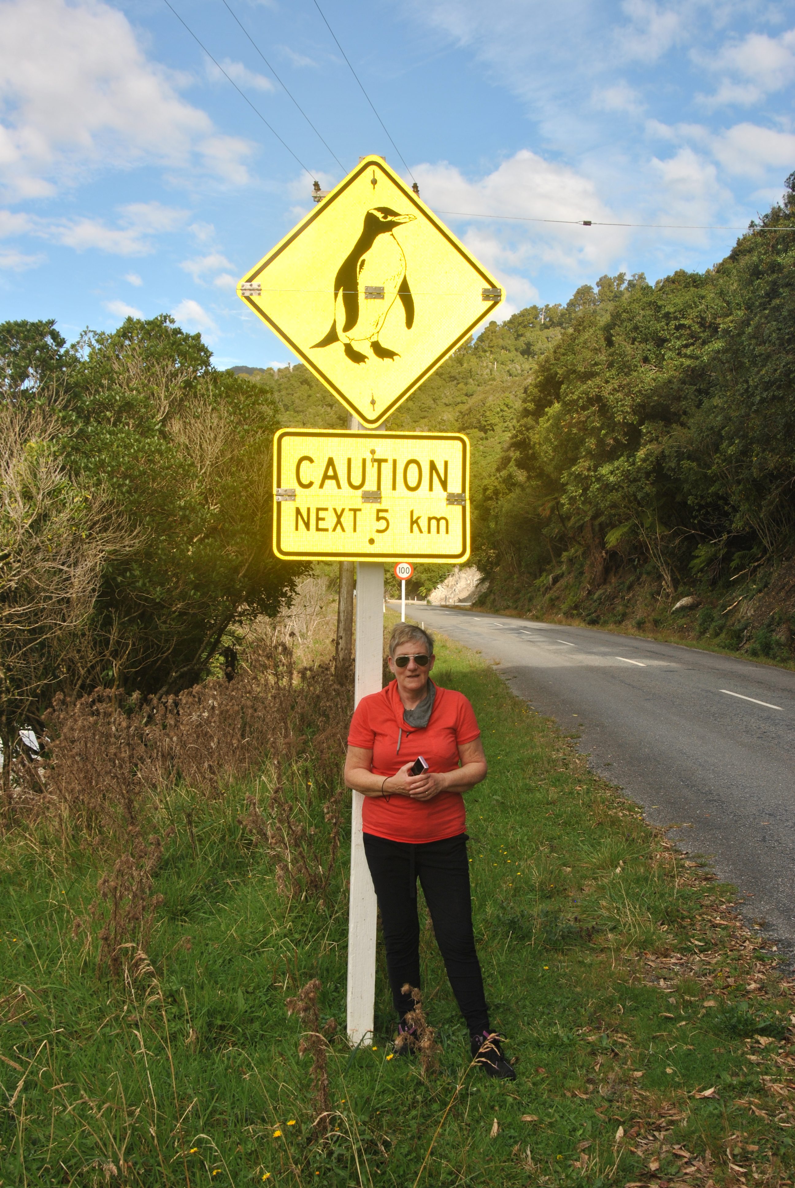 De pinguïns, welke hier normaal volgens de borden ook verblijven en de weg oversteken naar hun nachtverblijf of broedplaats, hebben we helaas (weer) niet gezien. We moeten het dus even doen met het bord.